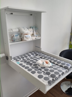 Für die Allerkleinsten gibt es einen Wickeltisch inkl. Zubehör und einen Stillsessel, damit sich die Mamis in Ruhe zurückziehen können.